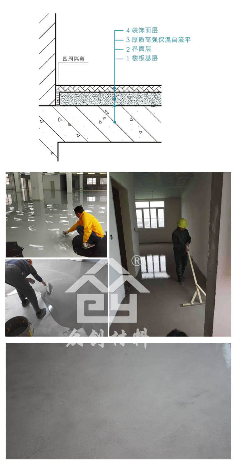高強(qiáng)度自流平砂漿是一種新型的樓板保溫找平一體系統(tǒng)和地暖回填材料。它以水泥、高強(qiáng)水泥、石膏復(fù)合做為膠凝材料,添加微晶、級(jí)配骨料、填充料、可再分散乳膠粉、及各種高分子功能添加劑等混合而成,是一款新拌時(shí)流動(dòng)性好,早期強(qiáng)度高,施工方便,平整度高,不易開裂的新型材料。該材料可同時(shí)做為樓板保溫層與面層。